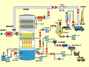 半干法煙氣脫硫工藝是采用吸收劑以漿液狀態進入吸收塔(洗滌塔),脫硫后所產生的脫硫副產品是干態的工藝流程。